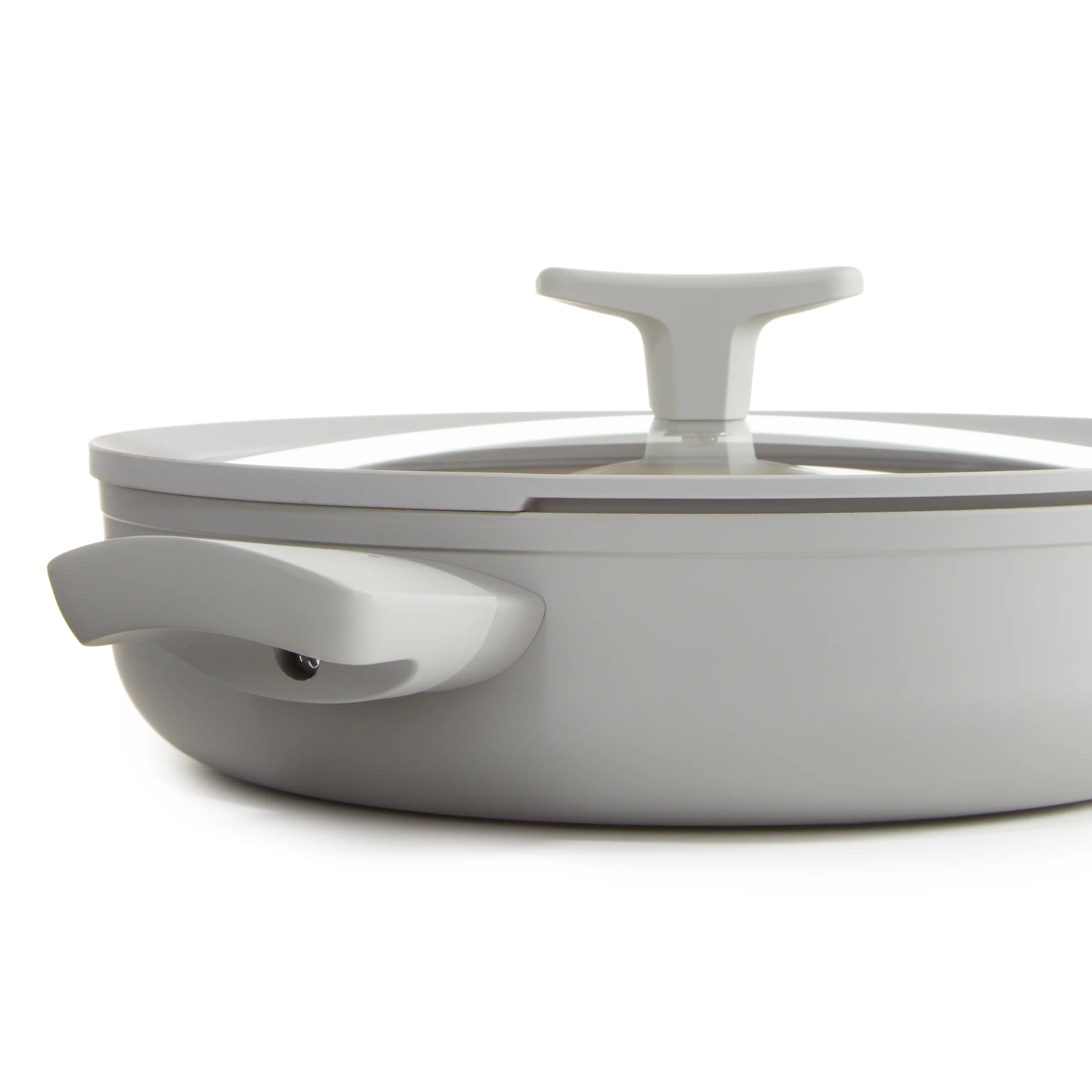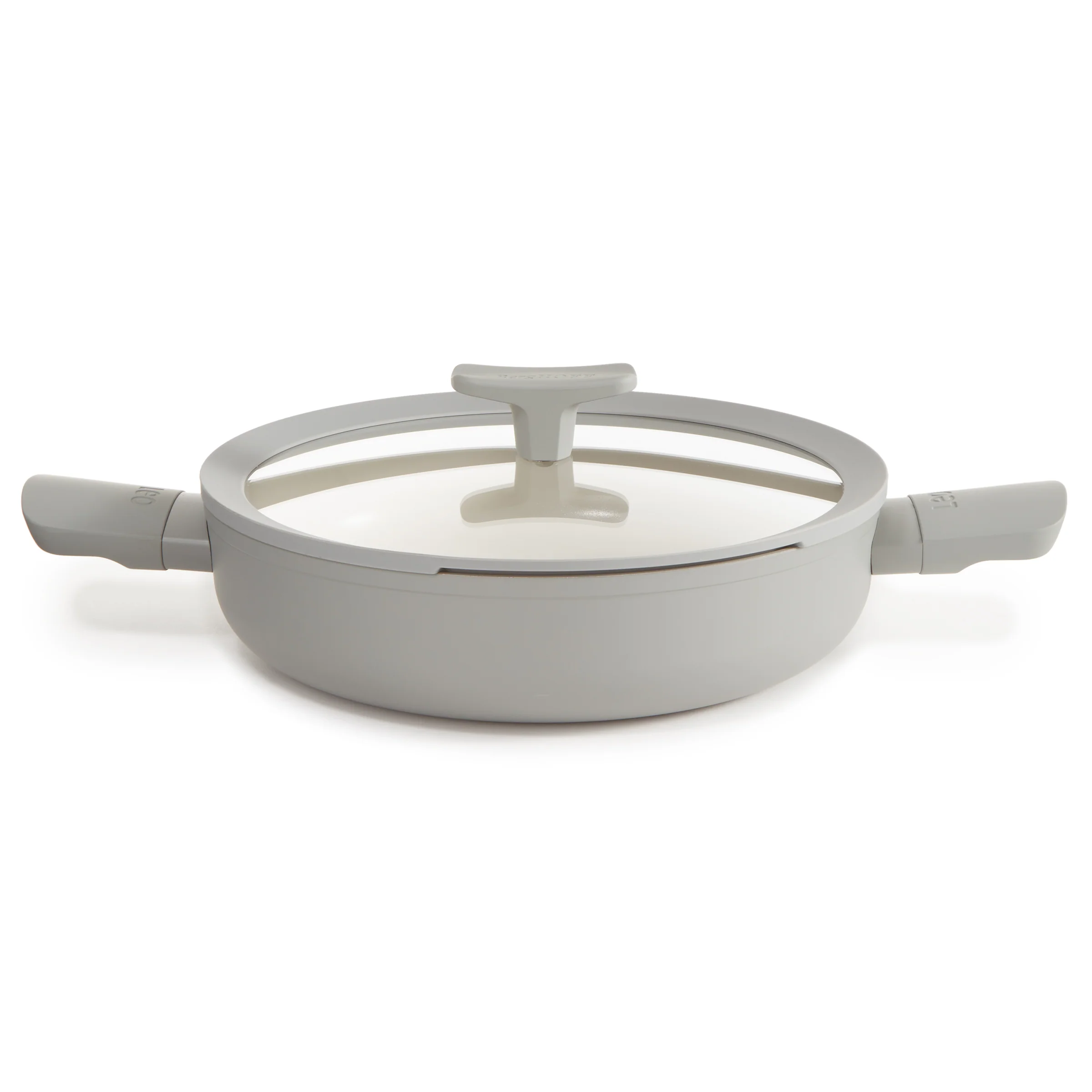 | Unique features | Clear glass cover with integrated air duct and straining function Special knob with spoon rest function Made with recycled aluminium Healthy CeraGreen ceramic non-stick coating (PFAS-free) Full disk base that conducts heat fast and evenly for energy-efficient cooking Suitable for all cooktops including induction and downdraft exhaust systems Ovenproof up to 180°C / 356°F |