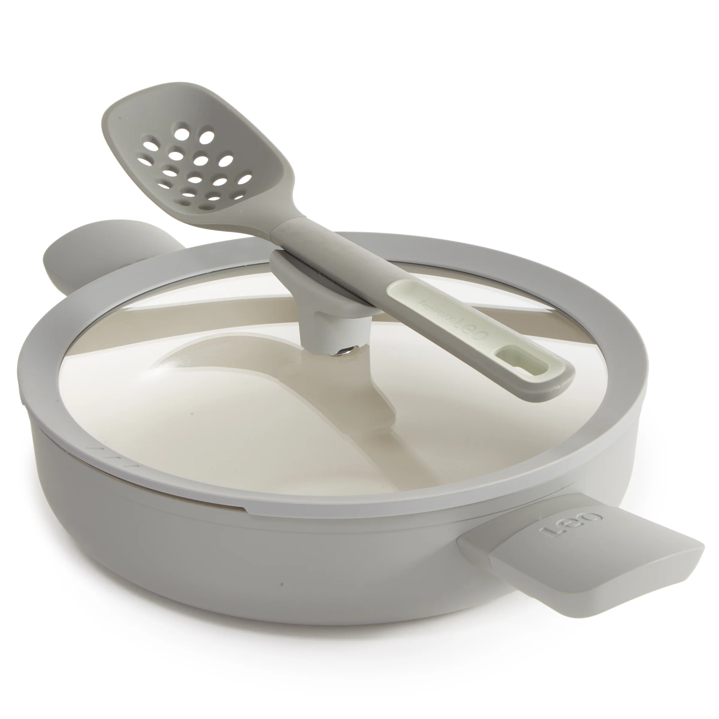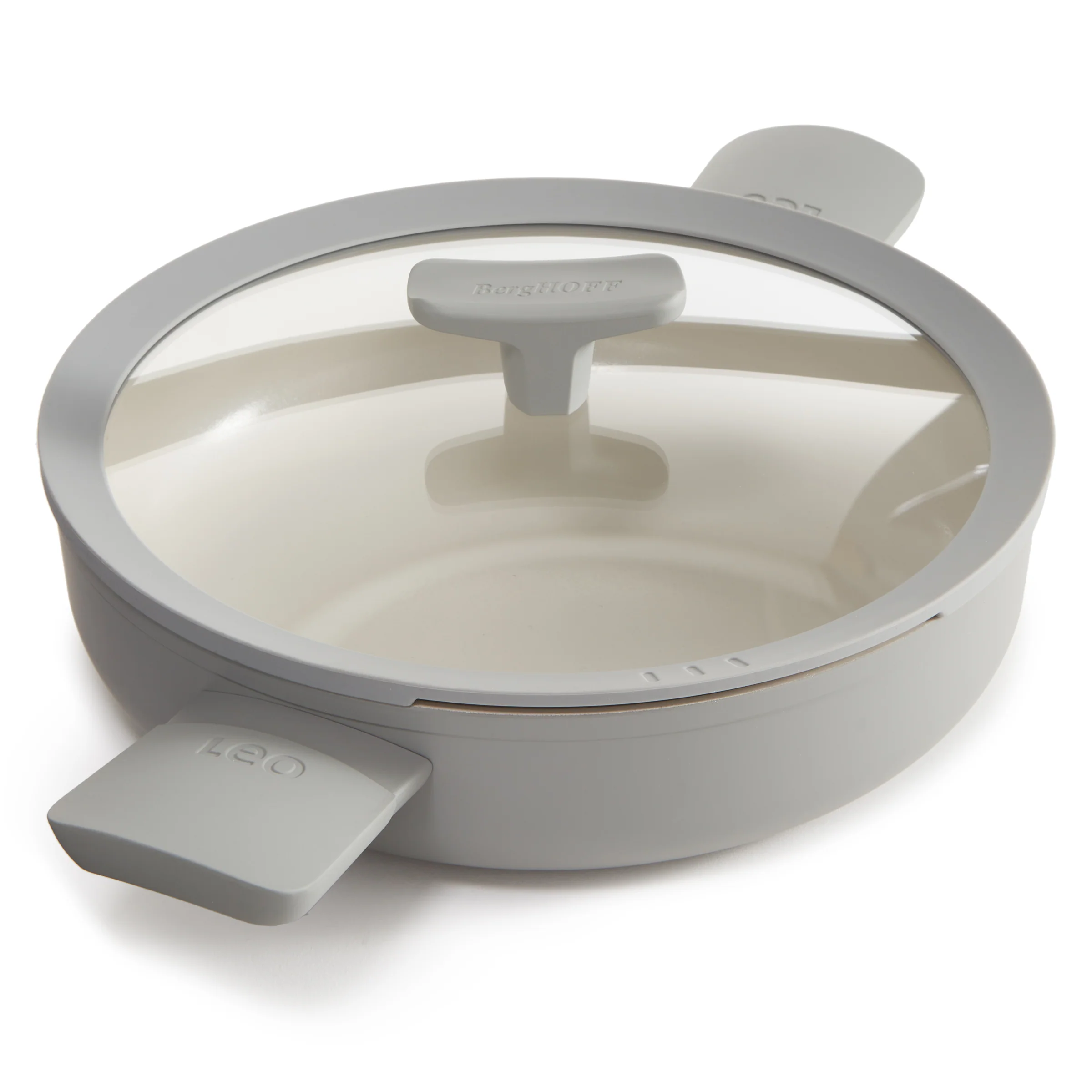 When you’re thinking of making a tasty risotto or sautéing some potatoes for dinner, but don’t want to spend ages cleaning up afterwards, this covered sauté pan is the perfect partner. Its 100% recycled aluminium body ensures a fast and even heat, energy-efficient, distribution on any kind of stovetop, including induction. It is covered with a high-quality, sustainable and healthy ceramic non-stick coating that not only allows you to cook with little to no oil but also makes the pan a breeze to clean. Add to this the stay-cool handles and the clear glass lid that’s equipped with a drain hole for easy straining and a knob with spoon rest function, and you’ve got a piece of cookware that’s sure to make your life easier!