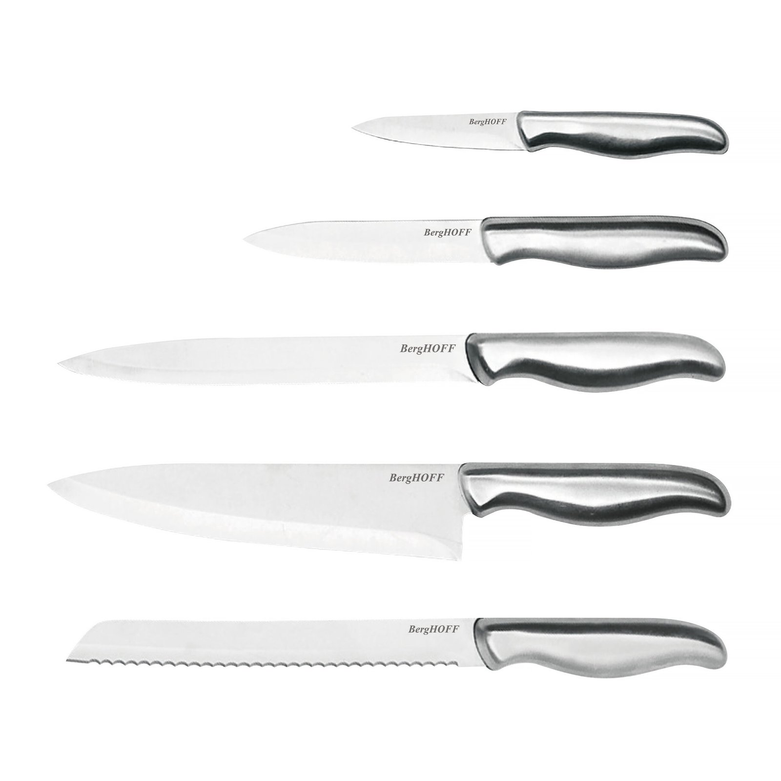 | Composition | 1 x Paring knife 8,50 cm (3.5″); 1 x Utility knife 10,50 cm (4″); 1 x Carving knife 20,00 cm (8″); 1 x Chef’s knife 20,00 cm (8″); 1 x Bread knife 20,00 cm (8″); 1 x Wooden block 24,18 x 11,20 x 8,00 cm (10 x 4.5 x 3″) |