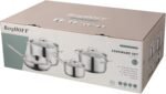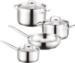 Composition 1 x covered saucepan 16cm (6.5″) – 1.60L (1.75qt); 1 x covered casserole 20cm (8″) – 3.70L (4qt); 1 x covered stockpot 24cm (9.5″) – 6.10L (6.5qt); 1 x frying pan 24cm (9.5″) – 2.10L (2.25qt)
