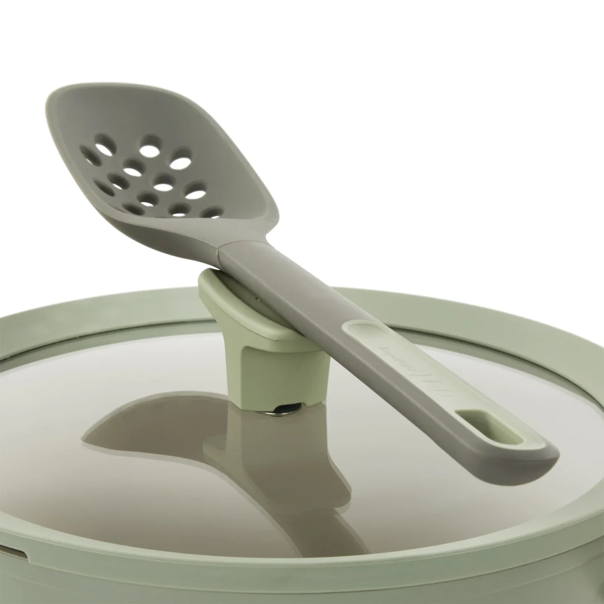 Stewing apples for a crumble, whisking up a delicious sauce or cooking rice for two, whatever you’ve got planned, this user-friendly and energy-efficient saucepan is ready to do its part. It features a 100% recycled aluminium body that ensures a fast and even heat distribution on any kind of stovetop, including induction, and is equipped with a high-quality, sustainable and healthy ceramic non-stick coating so you can cook with little to no oil. The sturdy stay-cool handle and the glass lid that allows you to keep an eye on your cooking without having to lift the lid. On top of that, the knob on the lid is equipped with a spoon rest.