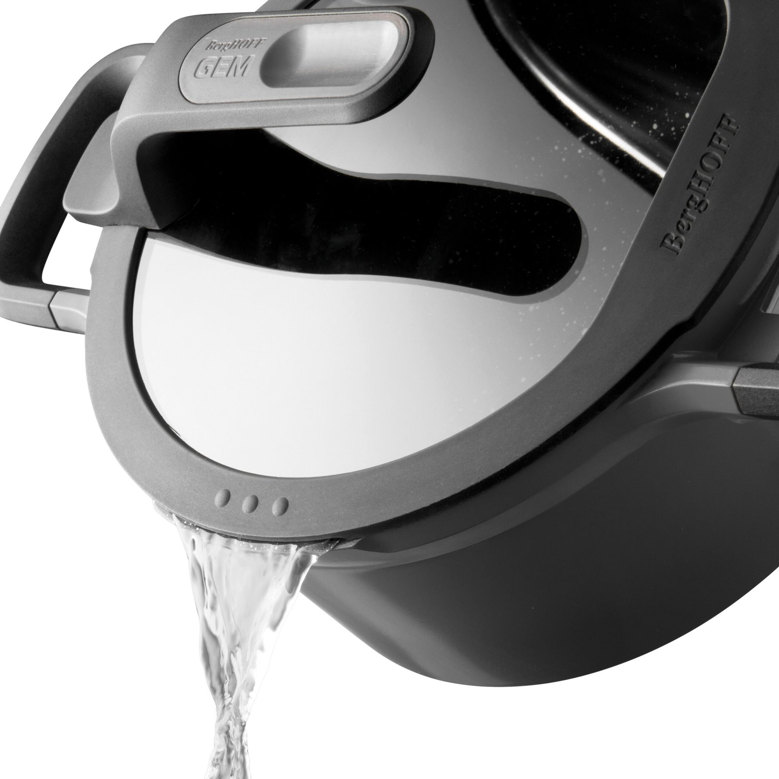 Whether you’re making a one-pot dish for a family of four or a batch of soup that will last a couple of days, with this covered stockpot you’ll have it ready in no time. The lightweight aluminium body is very easy to lift with the stay-cool handles and works on any kind of stovetop, including induction. On top of that, the pot features a high-quality non-stick coating, pouring rims for dripless pouring and a clear glass lid with two integrated pouring areas for precise straining of various ingredients. Want to stir or serve the contents of the pot? Just place the lid vertically on the body so you’ve got your hands free to give your dish that finishing touch.