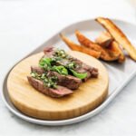 It might seem like an odd combo; a bamboo board on an oval plate but it’s certainly an interesting way to serve your outdoor dinner. Meat or fish goes on the wood while fries, vegetables and sauces have plenty of room on the plate. Got a big appetite? Just place the bamboo board next to the plate and enjoy those extras. Or why not replace the bamboo board by a soup bowl and serve up some freshly-baked bread on the side? The choice is yours!