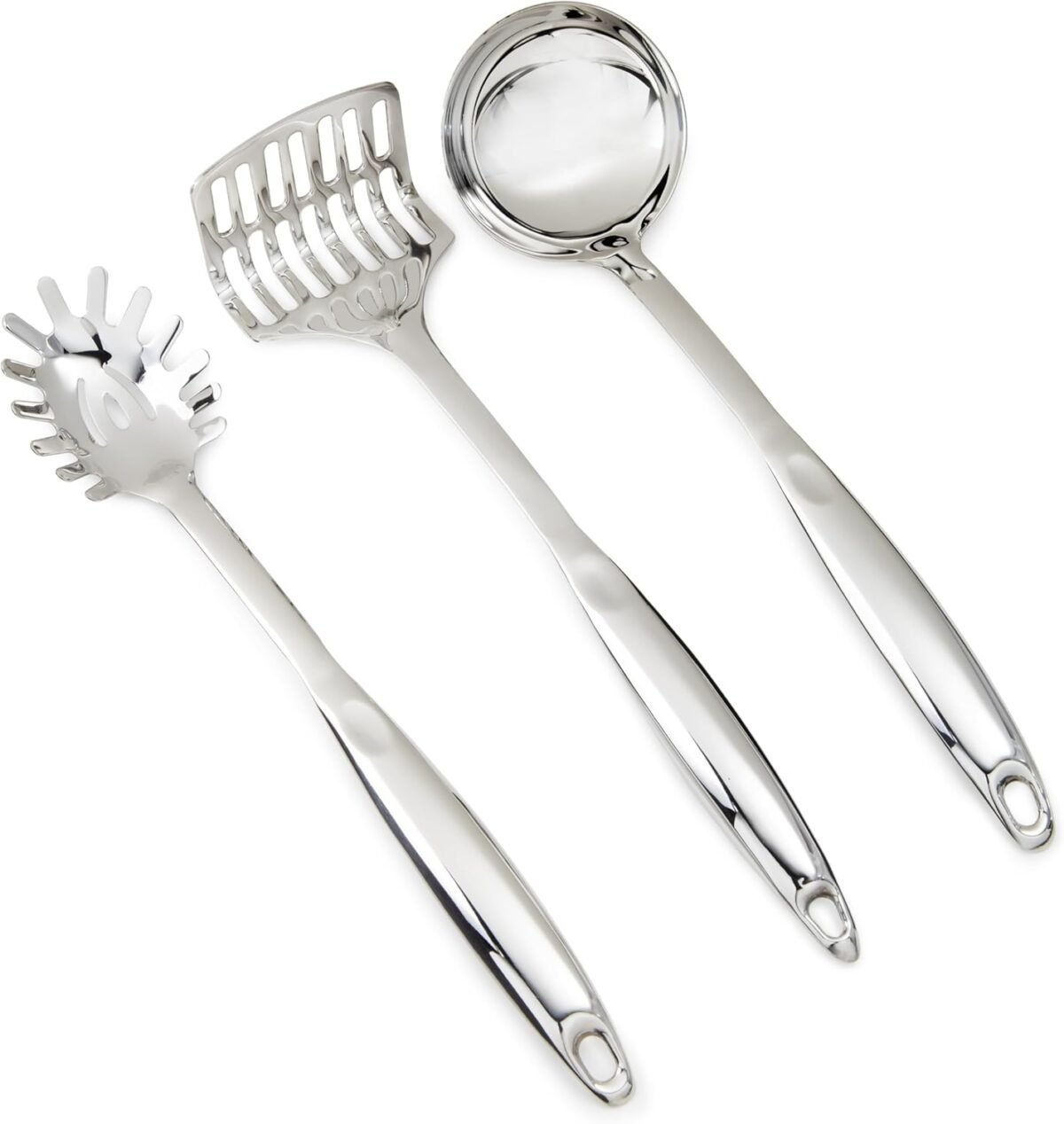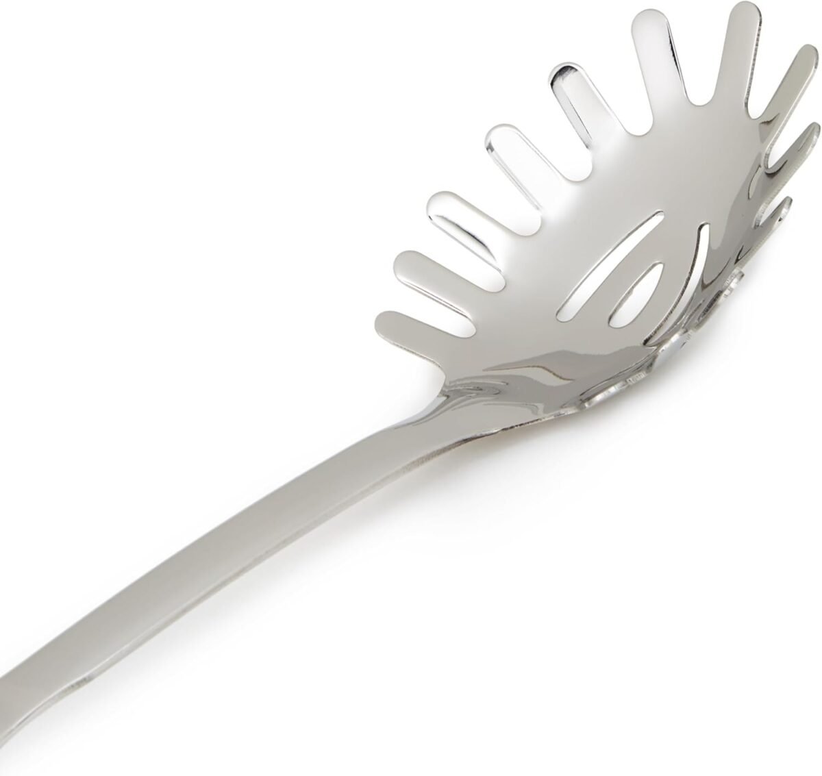 This stainless steel pasta server makes it easy and fuss free to serve up everything from penne to spaghetti, with a slotted design that lets water drain away. Easy to store due to the convenient hanging hole.