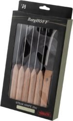 This 6-piece Studio steak knife set combines sharp stainless steel blades with comfortable wooden handles, making slicing steak and other meats effortless and precise—perfect for outdoor dining or home BBQs.
